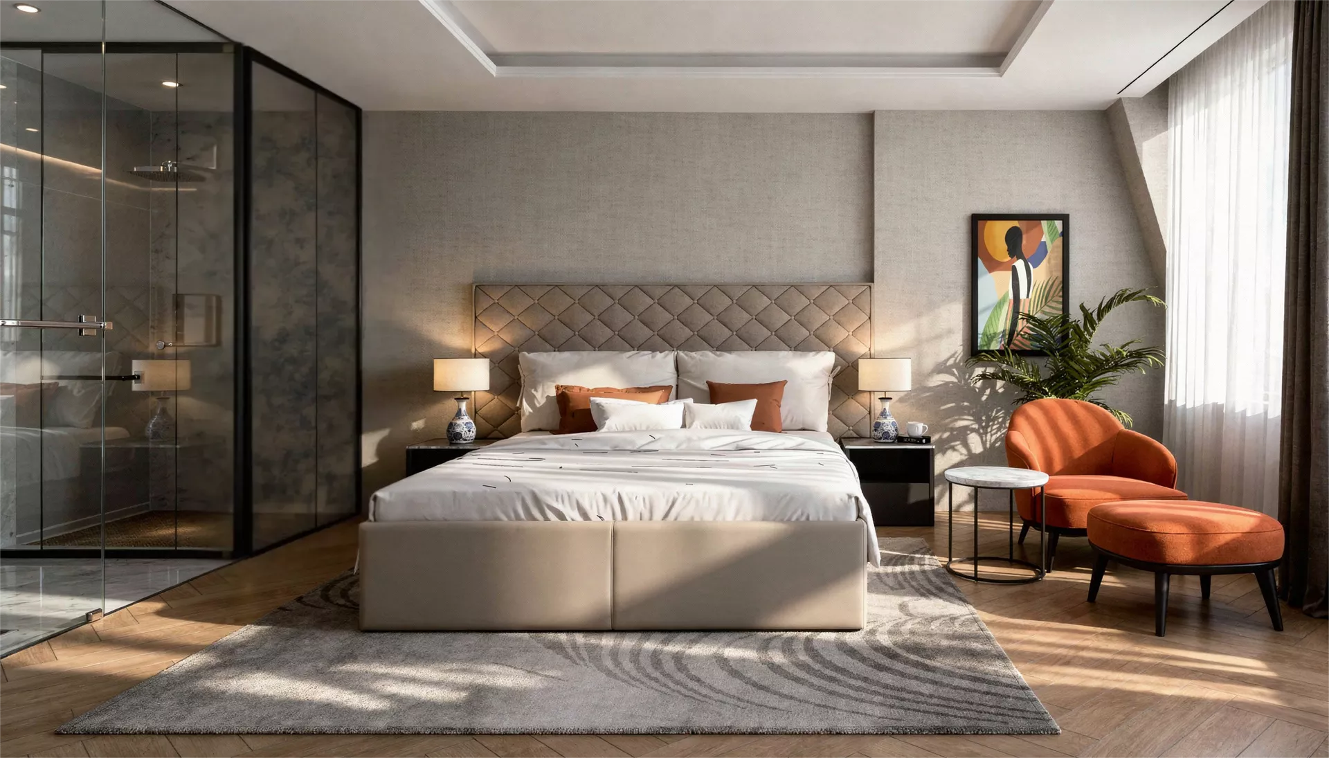 After a day of strolling through town, walking along the river, or returning from lively gatherings, this room offers an elegant pause for close friends or small families, with two distinct resting spaces for added privacy.